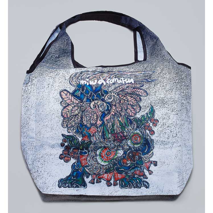 小松作品の《阿獅子》と《吽獅子》の三形態シリーズを使用したコンパクトに折りたためて使えるオリジナルエコバッグ
